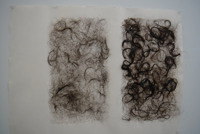 A series of twelve silk garbage bin liners still exist. They are each hand dyed in individual batches using all natural dyes, personally harvested by the artist. Each of these bags have unique decorative elements such as ribbon, sequins, antique lace, and felted wool ornamentation.